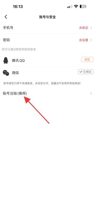 4、在賬號(hào)與安全頁面點(diǎn)擊賬號(hào)注銷慎用,按照提示完成賬號(hào)注銷流程即可。