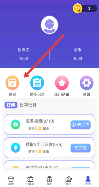 3、個(gè)人中心頁(yè)面點(diǎn)擊“簽到”,進(jìn)入簽到領(lǐng)福利頁(yè)面。