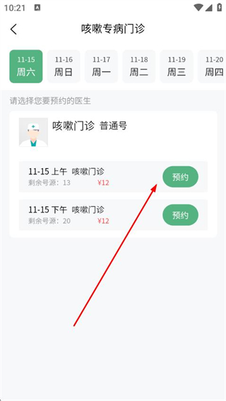 3、選擇就診日期和具體時段,點擊預(yù)約,即可完成掛號操作。
