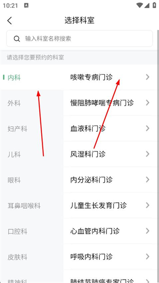2、在選擇科室頁面選擇就診科室,進(jìn)入醫(yī)生選擇頁面。