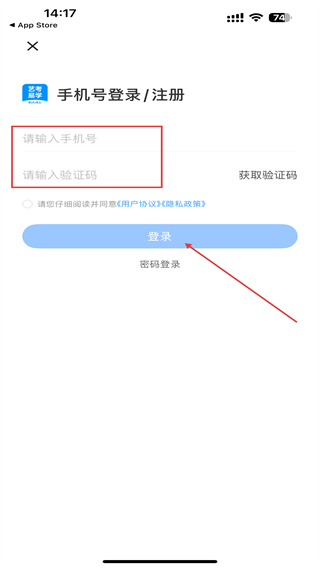 3、輸入手機號、驗證碼后,點擊登錄即可。