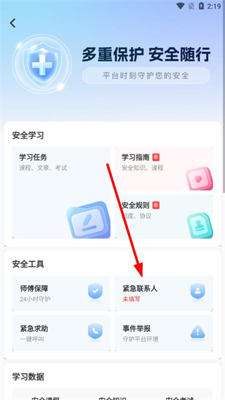 3、進入安全中心頁面后,點擊緊急聯(lián)系人選項。