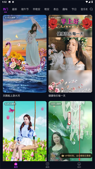 提供海量模板素材,輕松找到你喜歡的那一個(gè)。智能識別,一鍵替換成喜歡的照片,足不出戶將這大好山河萬水千山走遍。