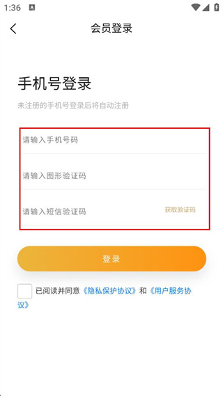 3、在會員登錄頁面依次輸入手機(jī)號碼、圖形驗證碼,點擊獲取驗證碼后輸入短信驗證碼。