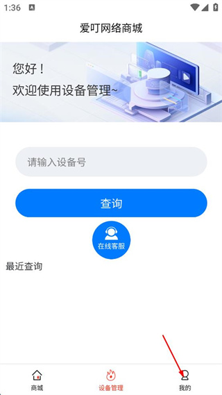 1、打開愛叮網(wǎng)絡(luò)商城,點擊右下角我的,進(jìn)入個人頁面。
