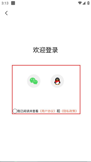 3、勾選同意用戶協(xié)議和隱私政策,選擇微信或QQ登錄方式,完成登錄操作。
