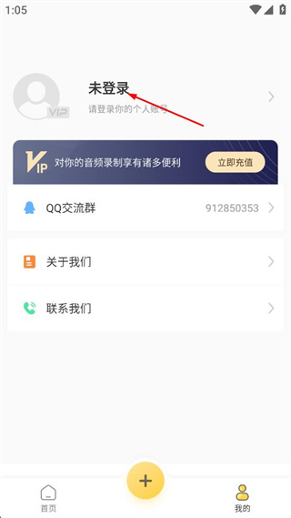 2、在個人界面,點擊“未登錄”區(qū)域,進入登錄/注冊界面。