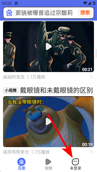 1、打開百度APP后,需要點擊底部未登錄,進(jìn)入個人的頁面。