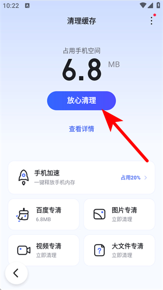 3、在清理緩存的頁面,點擊放心清理,完成緩存清理的操作。