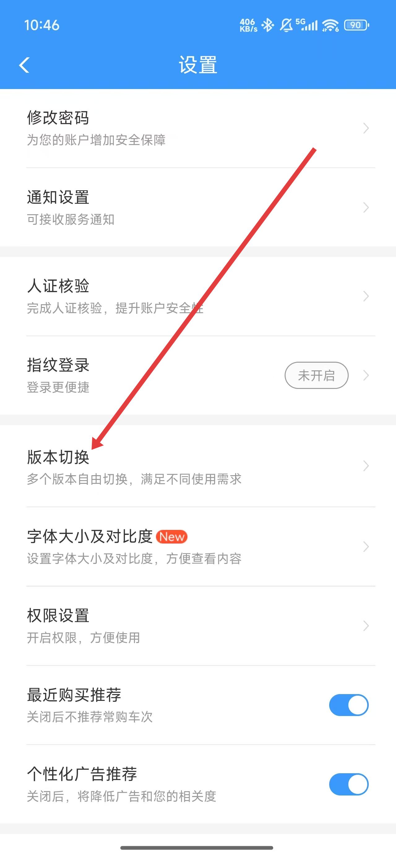 2、在進(jìn)入到設(shè)置頁面中,可以點(diǎn)擊版本切換按鈕,切換到合適的版本使用。