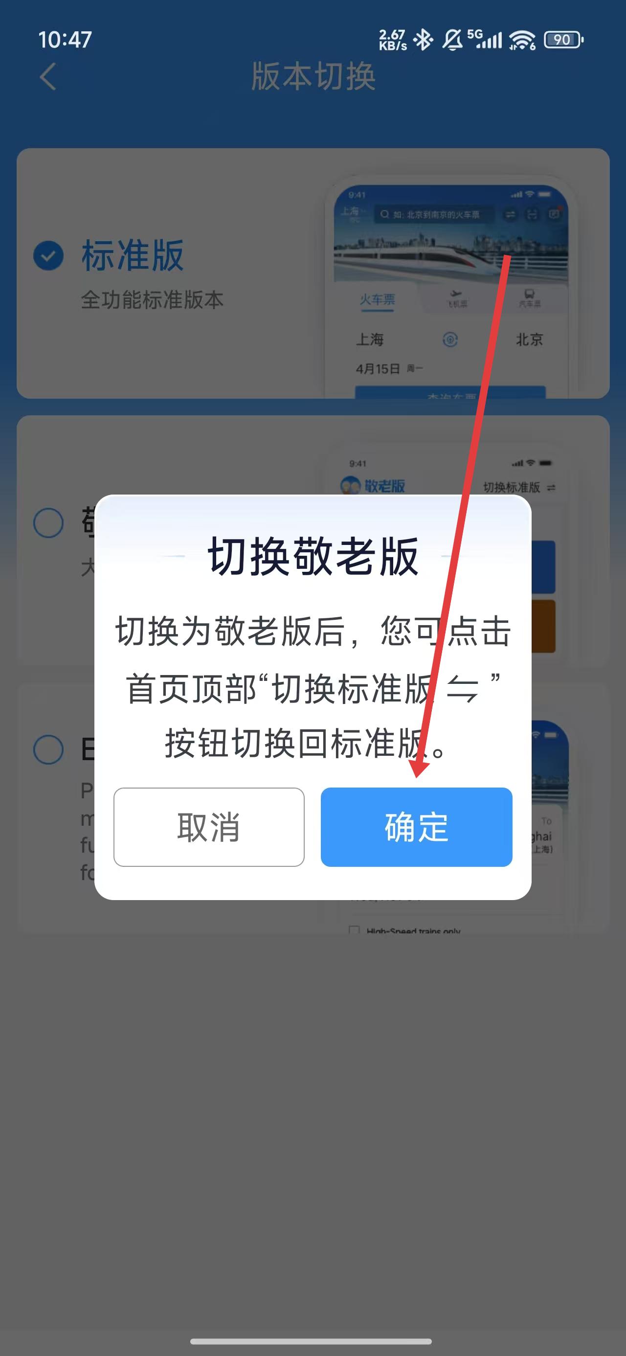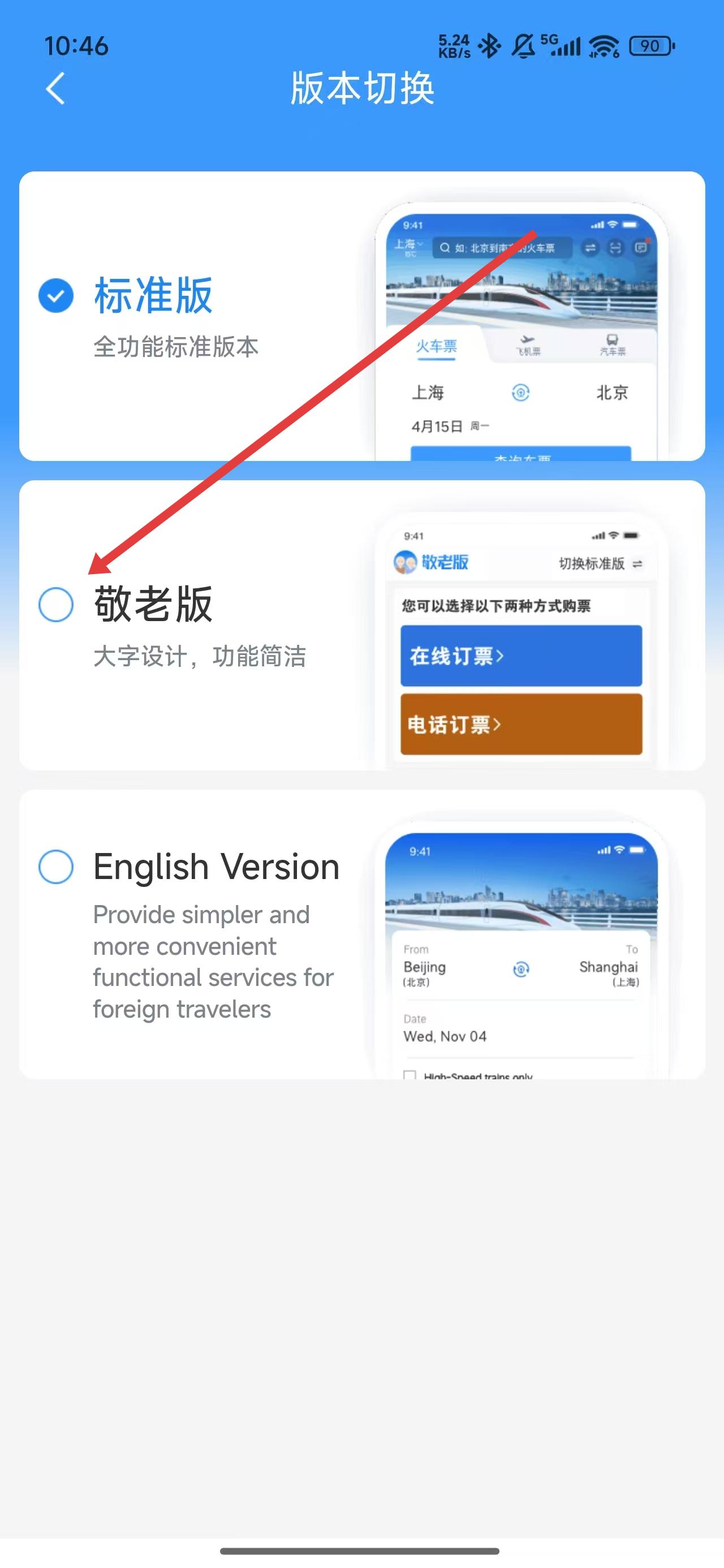 3、在進(jìn)入到版本切換頁面時(shí),可以點(diǎn)擊勾選敬老版進(jìn)行切換。