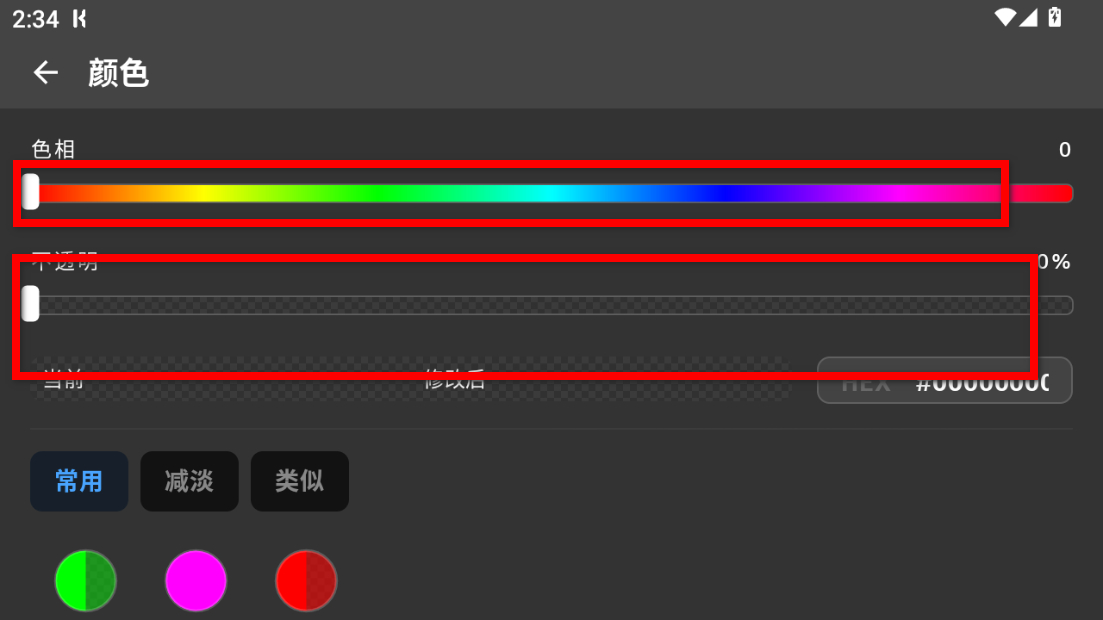 4、在顏色選擇界面,通過調(diào)整色相和不透明度滑塊,即可設(shè)置背景顏色。