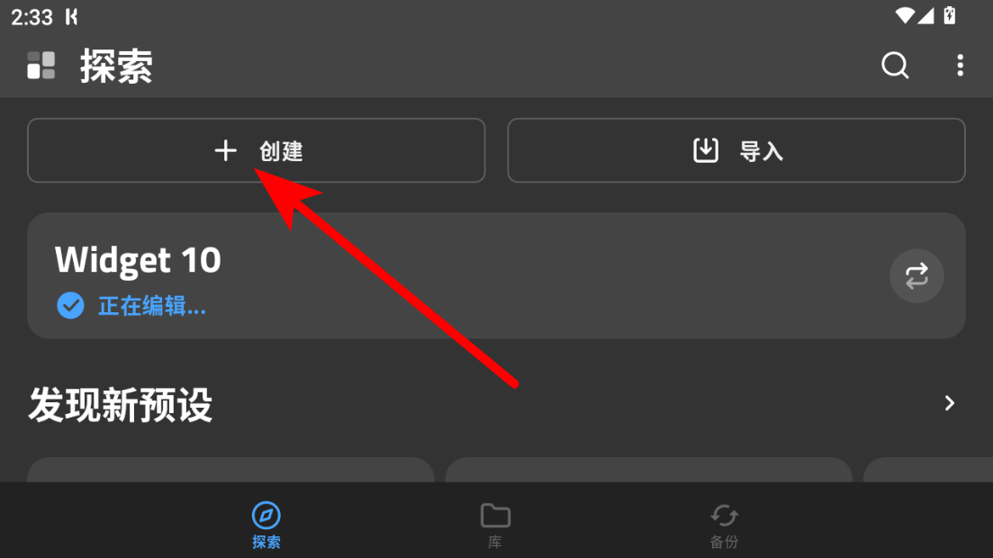 1、在探索頁面,點擊創(chuàng)建選項,進入編輯界面。