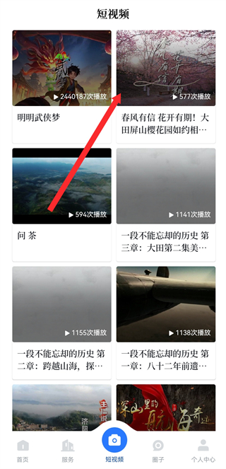 2、在短視頻板塊頁面,挑選需分享的視頻,進入視頻播放操作頁面。
