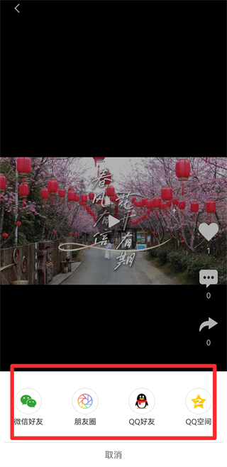 3、在視頻播放操作頁面,點擊分享按鈕,彈出分享渠道選擇界面。