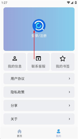 2、在個人頁面點擊登錄/注冊,進入登錄選擇頁面。
