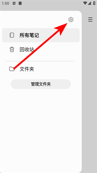 2、在功能菜單中,點擊右上角的設(shè)置圖標(biāo),進(jìn)入三星筆記設(shè)置頁面。