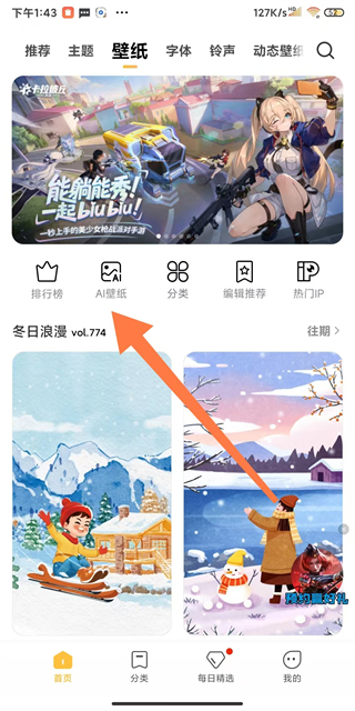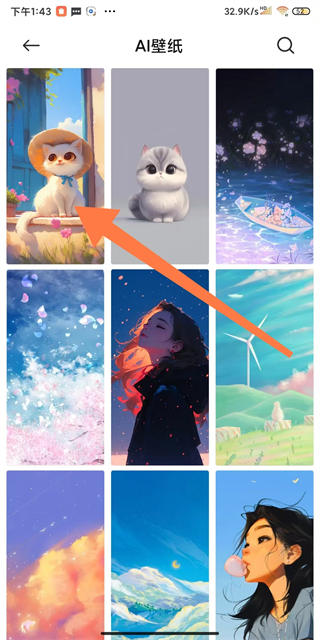 2、在壁紙頁面,點擊AI壁紙選項,進入AI壁紙列表界面。
