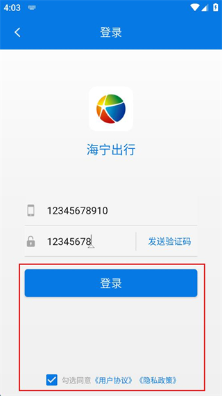 4、勾選同意用戶協(xié)議,隱私政策,點(diǎn)擊“登錄”按鈕,完成登錄操作。