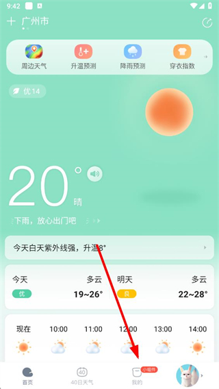 2、可查看到小時天氣,能瀏覽每一個時段之間的天氣預(yù)報。