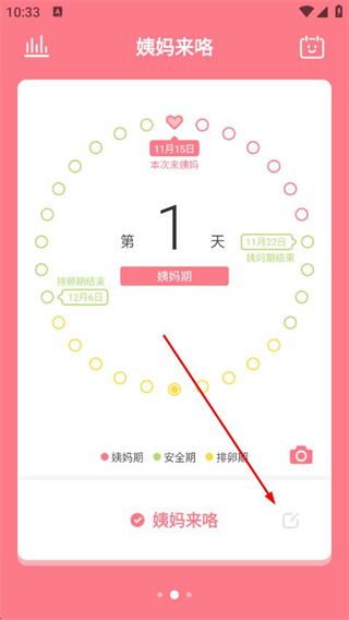 2、在姨媽來咯頁面,點擊右下角的編輯圖標。