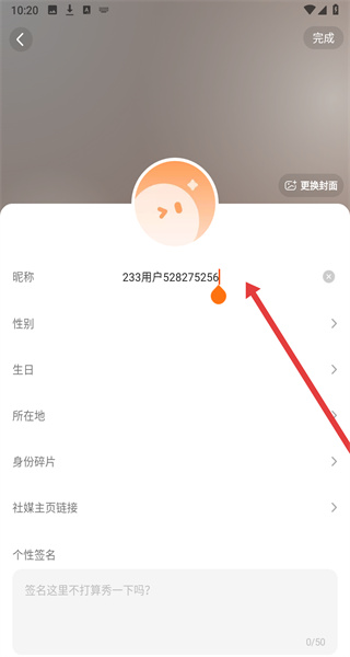 3、在資料編輯頁面,點擊昵稱輸入框進行修改昵稱。