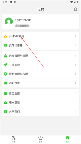 2、在我的頁面,點擊開通VIP會員選項。