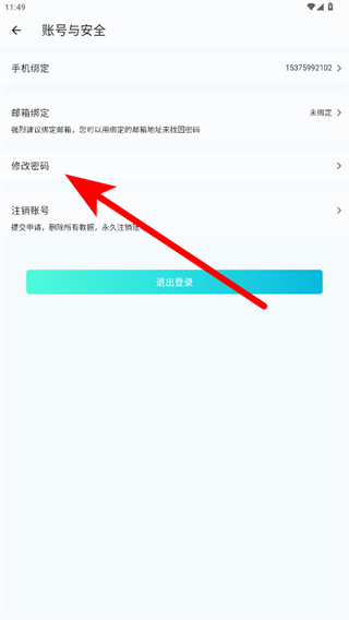 3、在賬號(hào)安全設(shè)置頁(yè)面中點(diǎn)擊修改密碼,進(jìn)入密碼修改頁(yè)面。