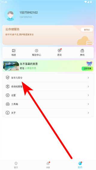 2、在個(gè)人頁(yè)面中點(diǎn)擊賬號(hào)與安全,進(jìn)入賬號(hào)安全設(shè)置頁(yè)面。