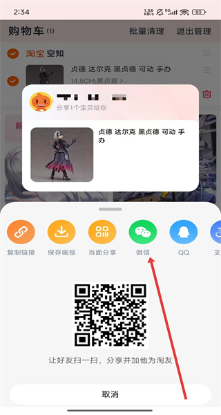 3、點(diǎn)擊勾選商品后,可以點(diǎn)擊分享按鈕,分享商品信息。