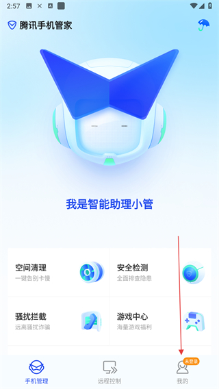 1、打開騰訊手機(jī)管家APP,點(diǎn)擊右下角我的。