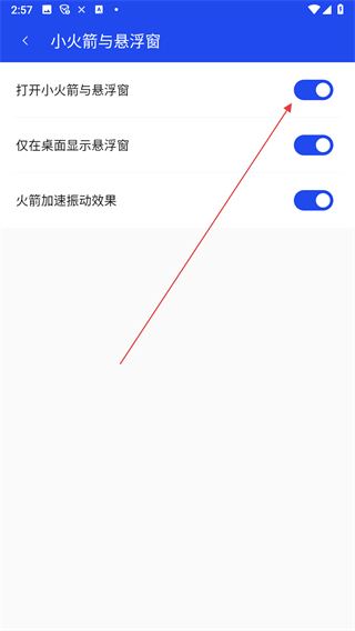4、點(diǎn)擊打開小火箭與懸浮窗的開關(guān)按鈕即可。
