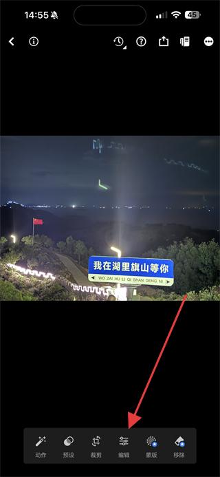 2、進入照片編輯界面后,點擊底部的編輯選項。