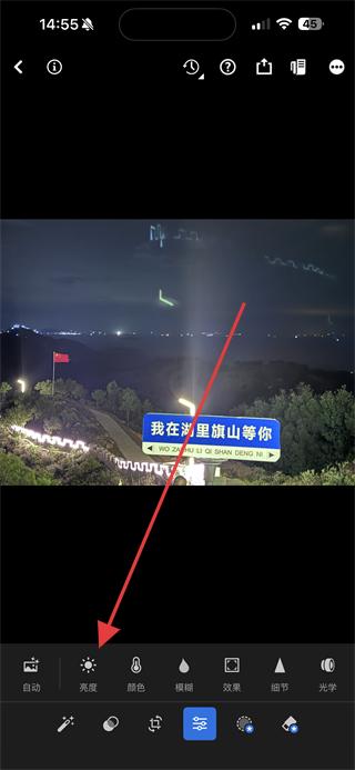 3、在編輯功能區(qū)中點擊亮度選項,進入亮度調整界面。