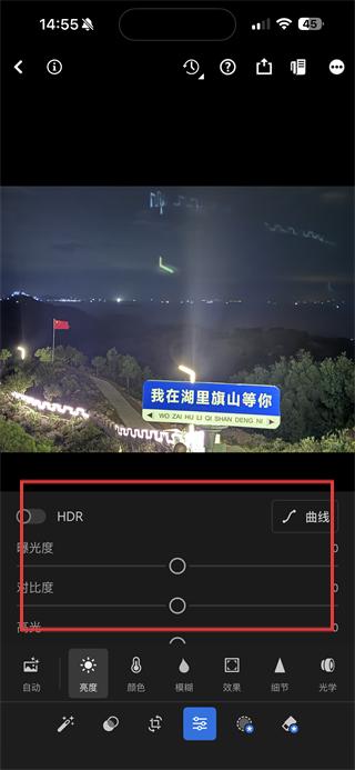 4、在亮度調整界面中,通過調整曝光度等參數(shù)滑塊,即可完成Lightroom中照片亮度的調整操作。
