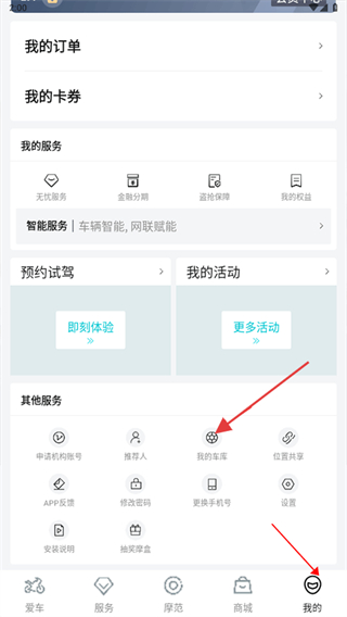 2、在我的頁面,點擊我的車庫。