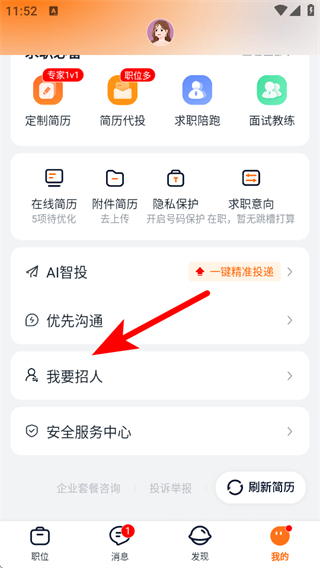 2、在個人的頁面中,我們需要點擊我要招人的選項。