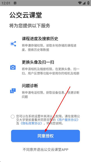 1、打開公交大學(xué)堂,在授權(quán)頁面點擊同意授權(quán)。