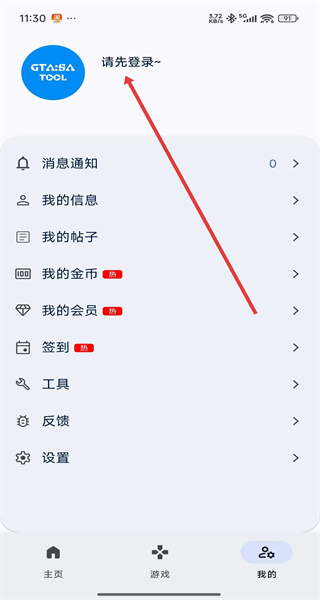 1、在GTSAOOL首頁點擊右下角“我的”,進(jìn)入個人中心頁面。