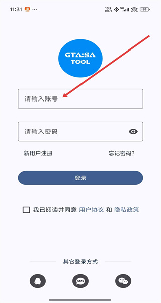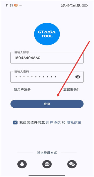 3、登錄界面輸入賬號和密碼,勾選“我已閱讀并同意用戶協(xié)議和隱私政策”。