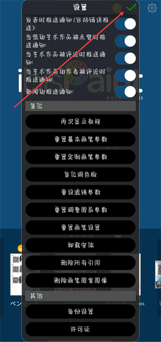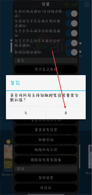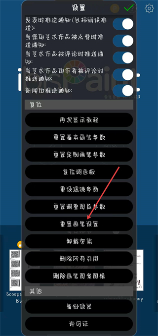 2、在設(shè)置頁面,找到重置畫筆設(shè)置選項并點擊。