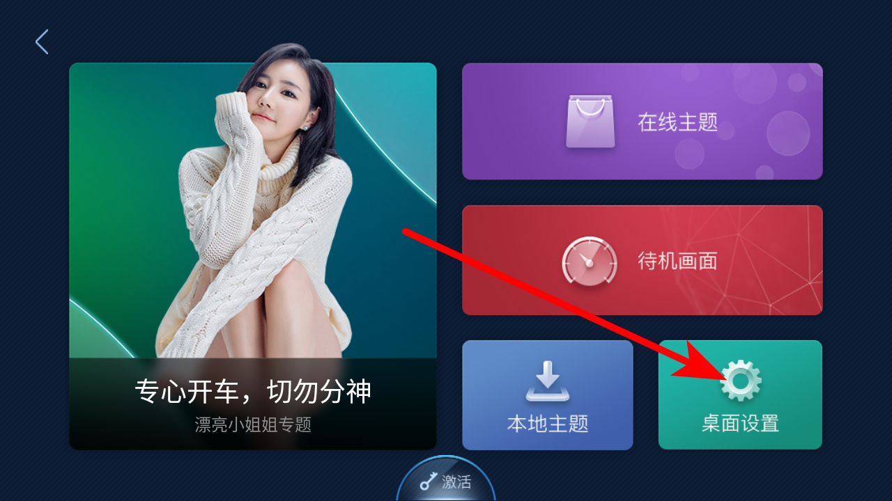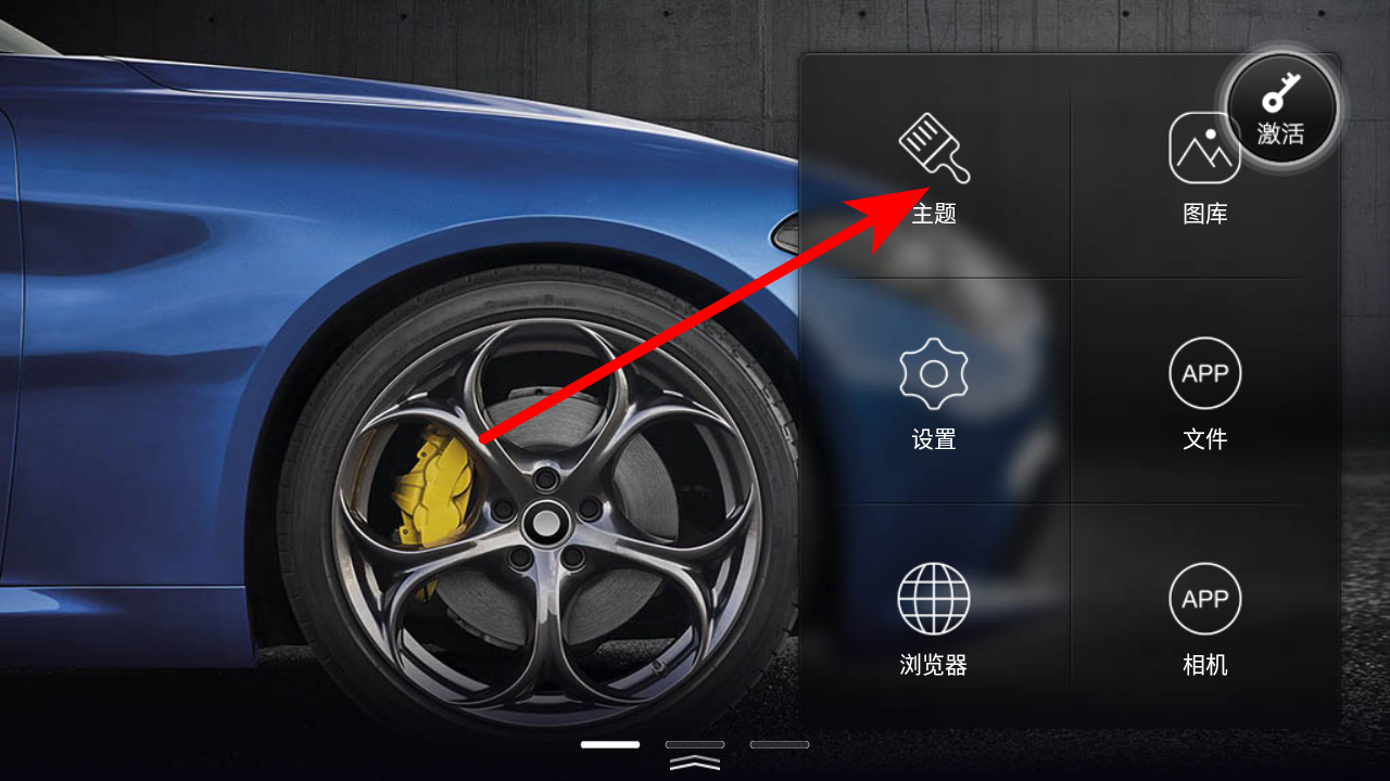 1、在XUI車載桌面功能菜單界面,點(diǎn)擊主題選項(xiàng),進(jìn)入主題設(shè)置頁(yè)面。