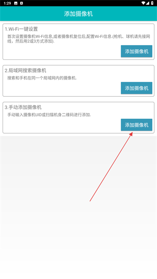 2、進(jìn)入添加攝像機(jī)的頁面內(nèi),點(diǎn)擊下方添加攝像機(jī)的按鈕。