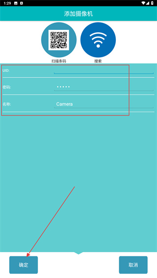 3、在添加攝像機(jī)的頁面內(nèi),輸入U(xiǎn)ID后點(diǎn)擊確定按鈕即可。