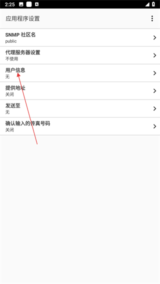 3、在應(yīng)用程序設(shè)置頁面,點擊用戶信息選項。
