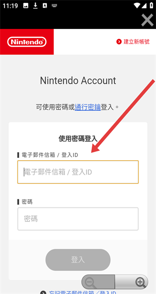 3、任天堂賬號登錄頁面點擊“登入”,進(jìn)入賬號密碼輸入界面。