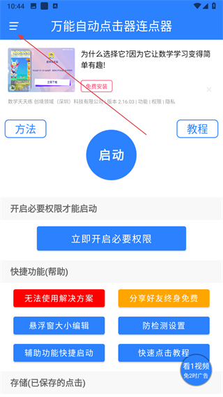 1、打開萬能自動點擊器連點器,點擊三條橫線菜單。