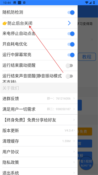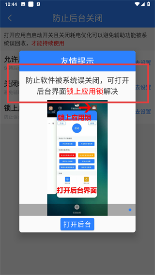 2、在彈出的菜單中,點擊防止后臺關(guān)閉選項。