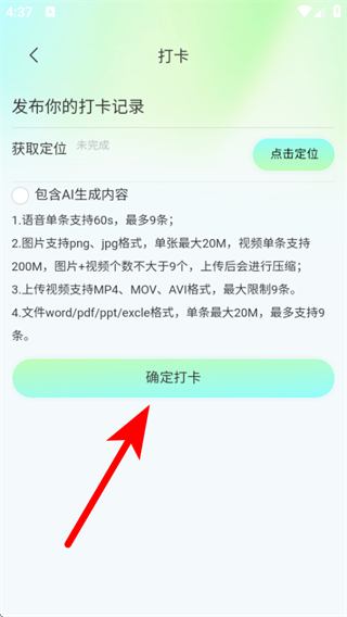 4、在打卡的頁面,需要點擊確定打卡按鈕,完成打卡簽到的操作。