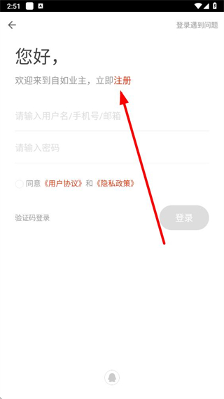 3、在登錄注冊(cè)界面,點(diǎn)擊注冊(cè)選項(xiàng),進(jìn)入注冊(cè)流程。